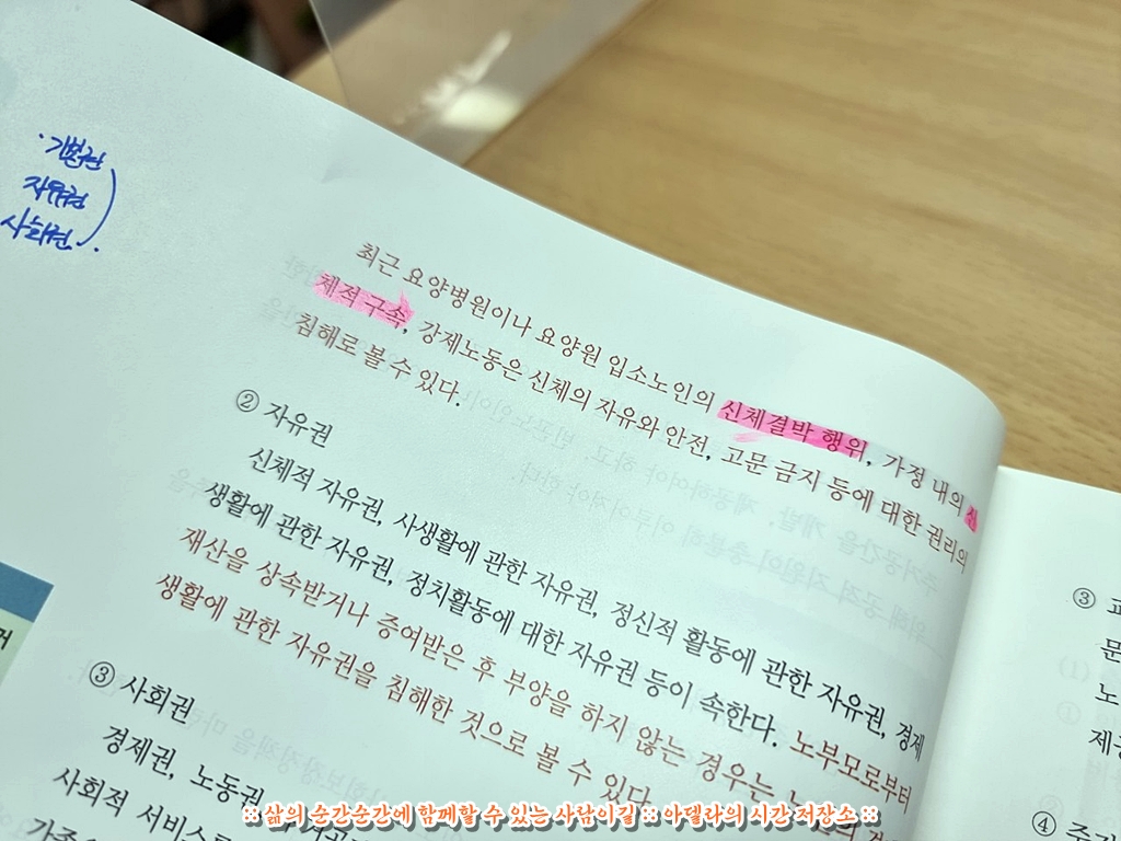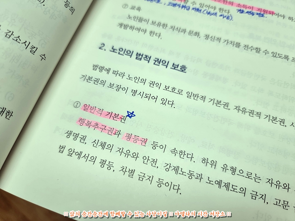 인권이라는 것은 기본적으로 신체, 심리, 사회적 기능이 약화된 노인들에게 일상생활의 제약을 가져다 주기에 오랜 기간 동안 인간다운 삶을 영위하기 위해서는 인권의 존중에 대한 회복 노력이 필요합니다.